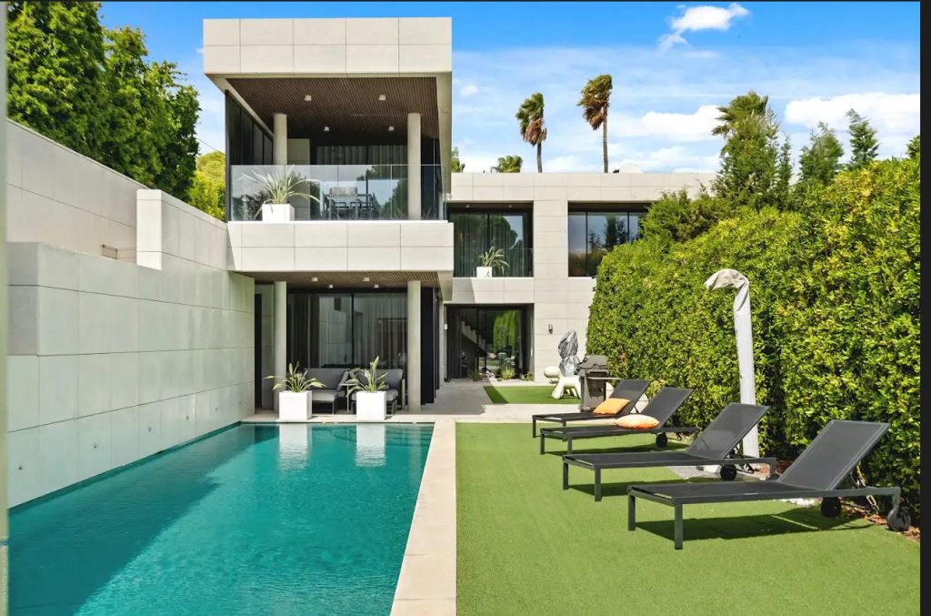 On the garden level, the master suite opens onto the garden terrace and swimming pool.
