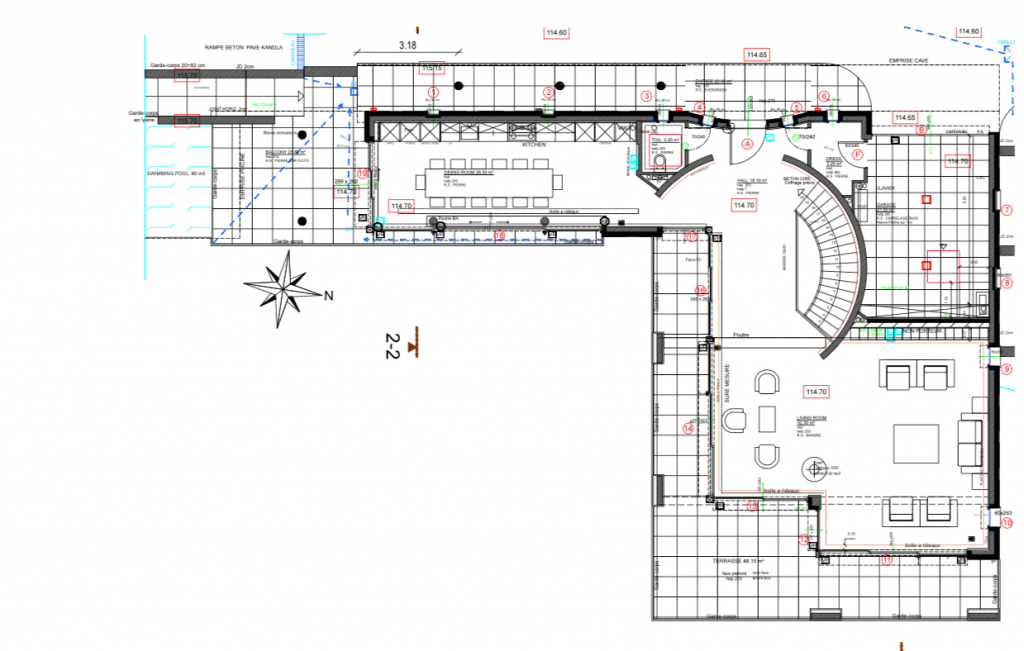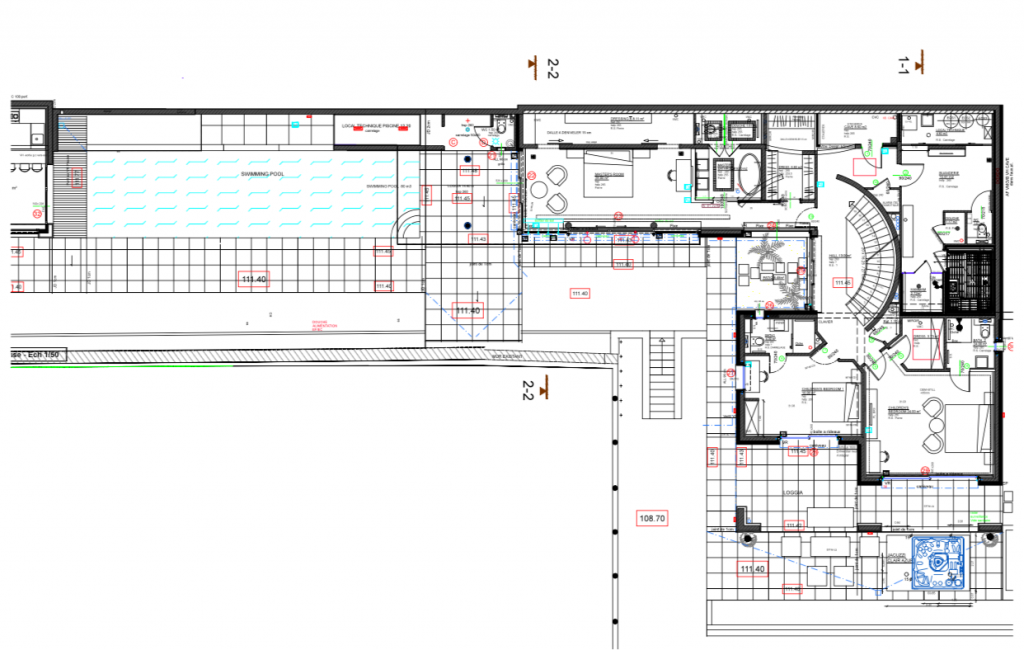 On that level is the Master suite, the pool, the hot-tube, the spa area with sauna, hammam, toilet, shower and minibar, all to ensure a complete comfort. Also there is a large wine cellar.